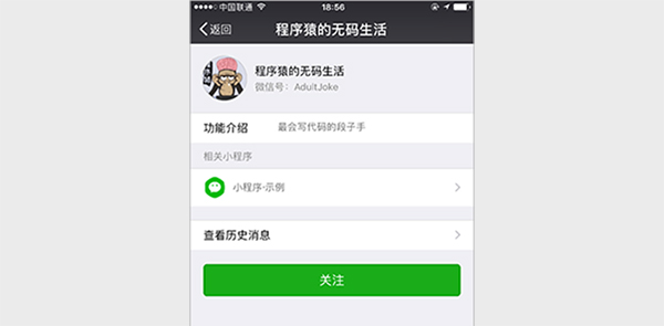 小程序可以绑定以个人名义注册的微信公众账号微信小程序接入指南 https://mp.weixin.qq.com/debug/wxadoc/introduction/index.html?t=1515488536公众号关联小程序公众号关联小程序后,将可在图文消息、自定义菜单、模板消息等功能中使用小程序。关联规则:所有公众号都可以关联小程序。一个公众号可关联10个同主体的小程序,3个不同主体的小程...